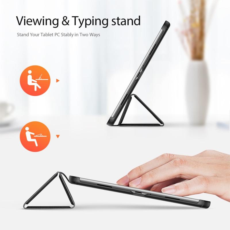 Dit accessoire beschermt het apparaat tegen deuken en krassen en breidt de functionaliteit ervan uit. De voorklep doet ook dienst als standaard met drie modi voor eenvoudig typen en handsfree video kijken.