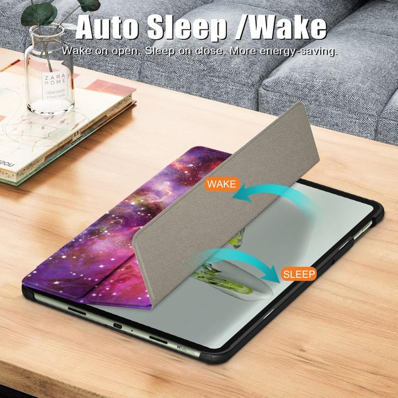 Of je nu een video bekijkt of tekent met een stylus op je OnePlus Pad Go, Oppo Pad Air2, deze foliocase houdt hem in een ideale hoek, voor een comfortabelere en productievere ervaring. Ondertussen schakelt de slimme wake-up / sleep-functie het display automatisch in wanneer u de voorklep opent.