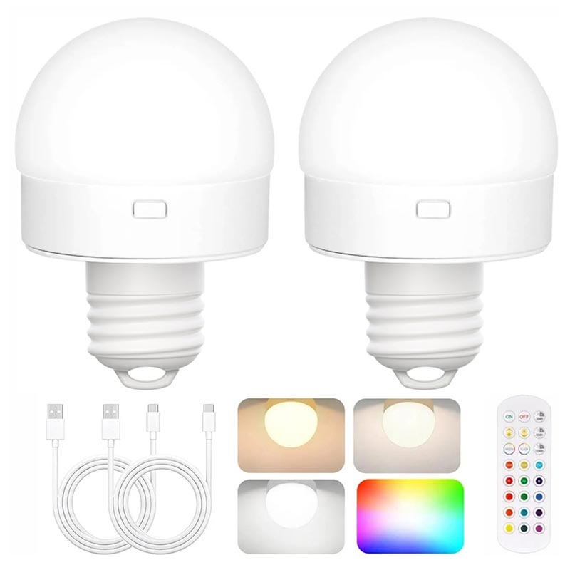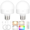 Oplaadbare gloeilamp met RGB en afstandsbediening - E27 - 2 stuks.