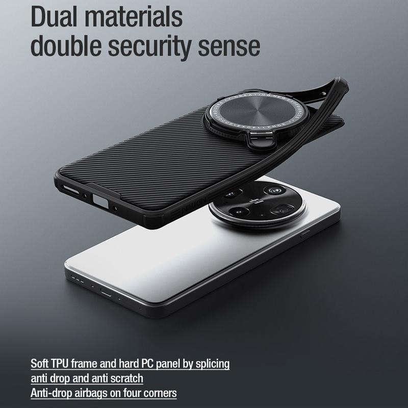 - Deze buitengewone Nillkin CamShield Prop hybride hoes is gemaakt van plastic en TPU-materialen