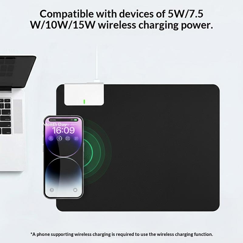 De muismat voor draadloos opladen combineert alledaags bureaucomfort met snelle draadloze stroomvoorziening. Hij is ontworpen voor moderne werkplekken en stelt je in staat om je smartphone op te laden terwijl je je muis gebruikt, zodat je bureau georganiseerd blijft en je apparaten de hele dag stroom hebben.