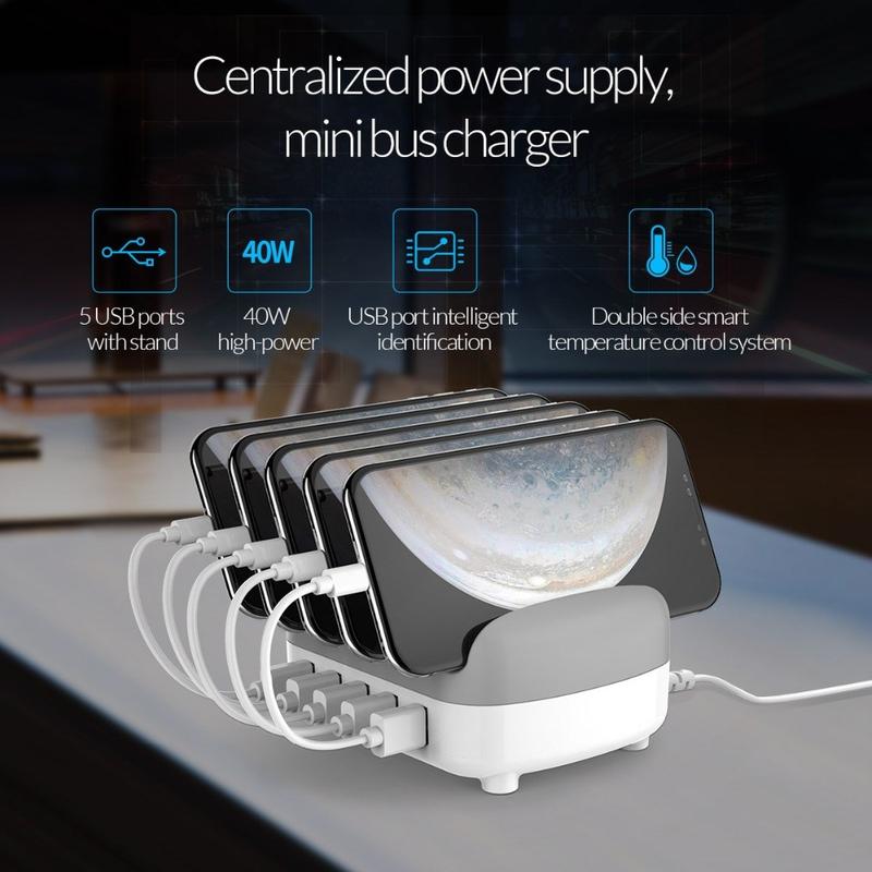 Orico DUK-5P USB-laadstation met 5 poorten (40W) en houder voor telefoon en tablet - EU-stekker