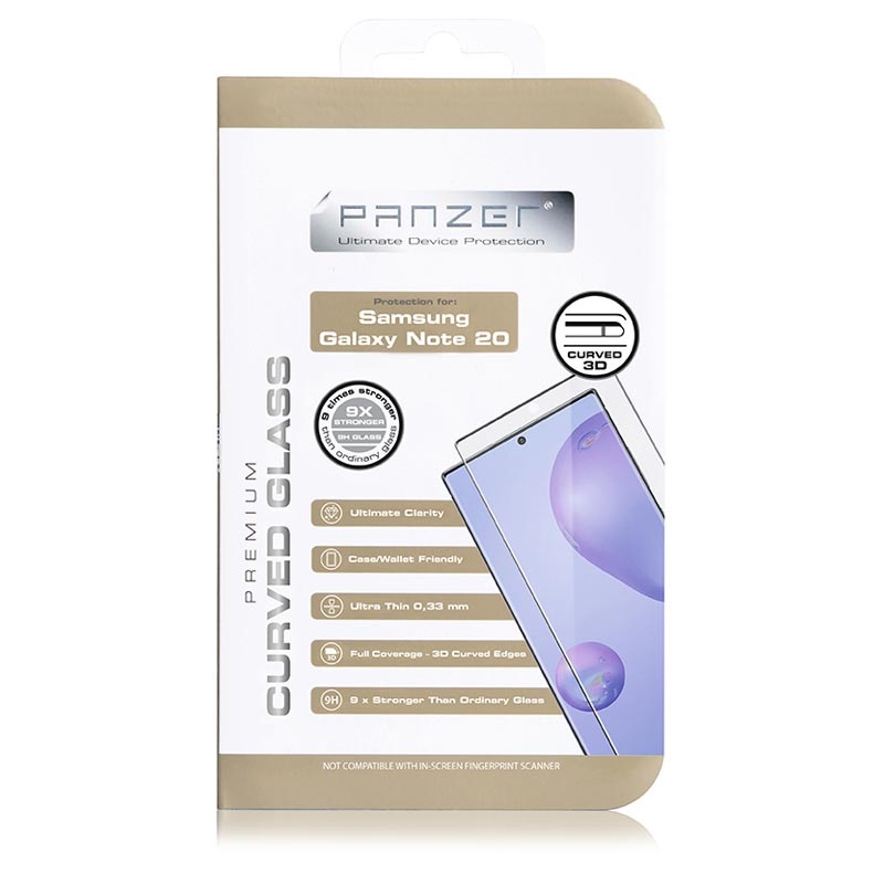 Panzer Premium Curved Screenprotector van gehard glas voor Samsung Galaxy Note 20 - 9H, 0,33 mm