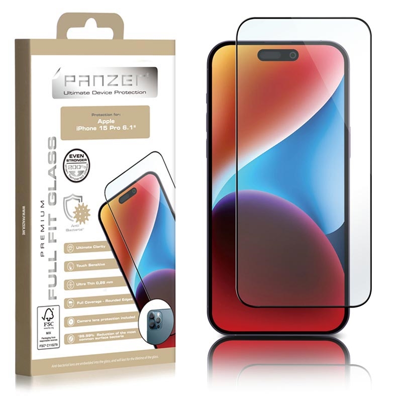 Panzer Premium Full-Fit Glazen Screenprotector voor iPhone 15 Pro