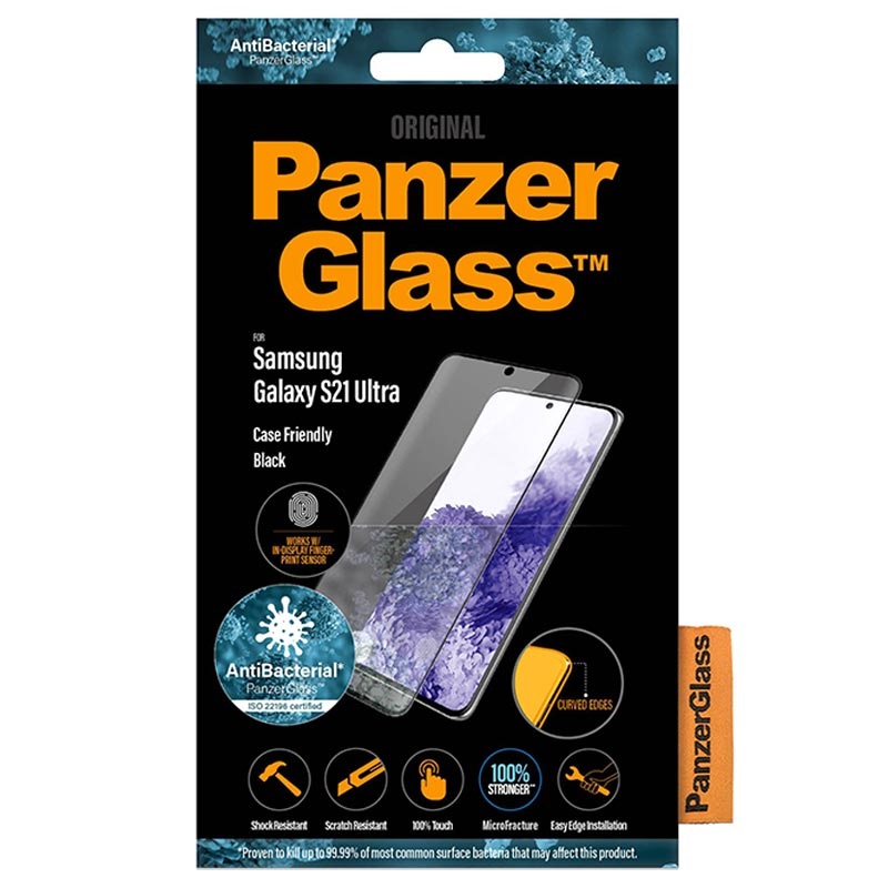 PanzerGlass Case Friendly Antibacteriële Screenprotector van gehard glas voor Samsung Galaxy S21 Ultra 5G