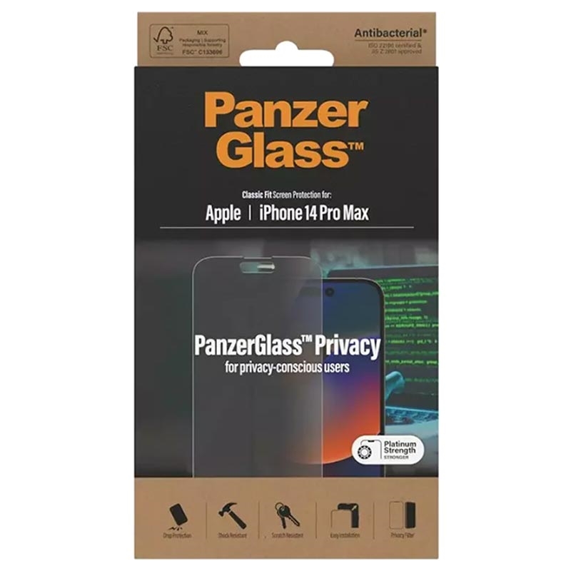 PanzerGlass Classic Fit Privacy AntiBacterial Glazen Screenprotector voor iPhone 14 Pro Max