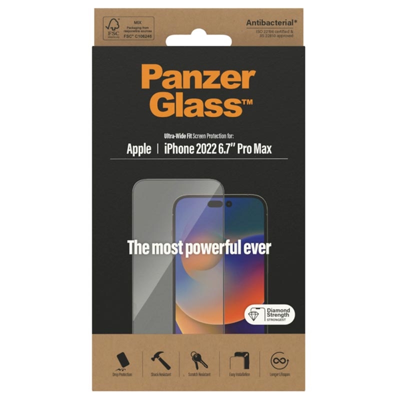 PanzerGlass Ultra-Wide Fit AntiBacterial Glazen Screenprotector voor iPhone 14 Pro Max