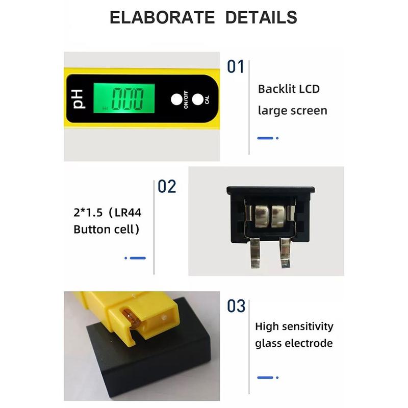 - Hoge nauwkeurigheid: Ontwikkeld met een geavanceerde elektrodesensor voor snelle, betrouwbare pH-metingen in verschillende omgevingen.