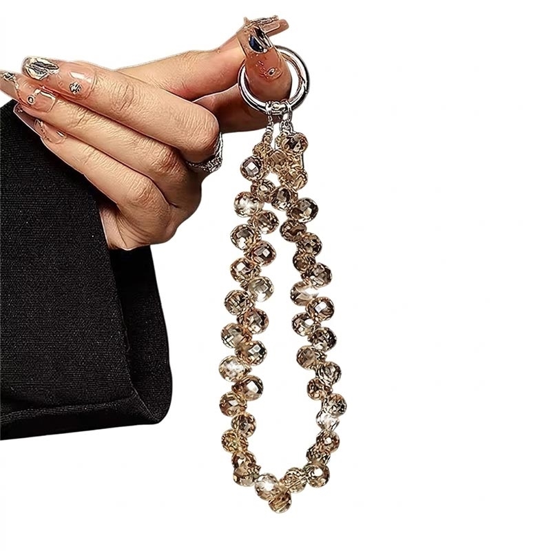 • 14cm lange telefoonketting met kristallen kralen - polsbandje/sleutelhanger met doorzichtig bevestigingslipje