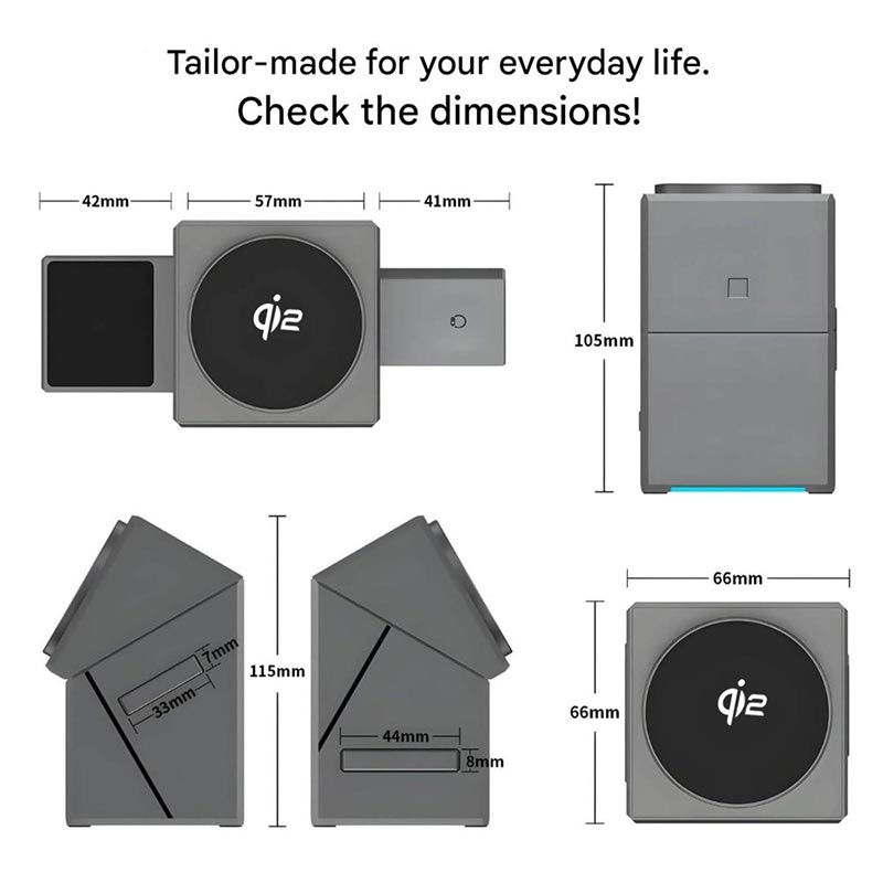 De Qi2 magnetische draadloze oplader van 15 W is een verfijnde 3-in-1 laadoplossing, ontworpen voor moderne Apple-gebruikers die waarde hechten aan zowel prestaties als design. Dankzij de draaibare constructie kan de oplader van een compacte kubus worden omgevormd tot een volledig functioneel laadstation, wat zorgt voor een strakke en elegante opstelling voor dagelijks gebruik. Met snel magnetisch Qi2-laden, nauwkeurige positionering en een ruimtebesparend ontwerp biedt het een naadloze laadervaring thuis, op kantoor of onderweg.