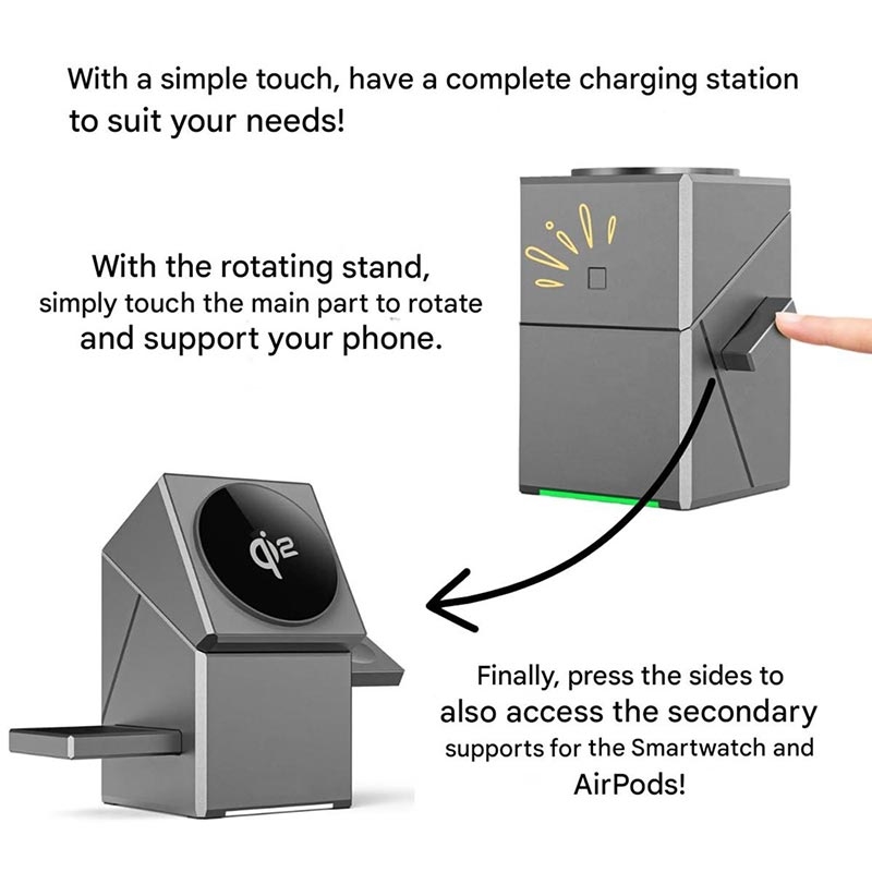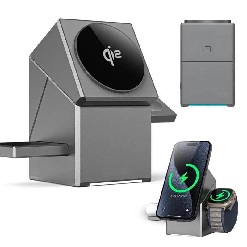 Premium 3-in-1 draaibaar Qi2 magnetisch draadloos laadstation voor iPhone, Apple Watch en AirPods