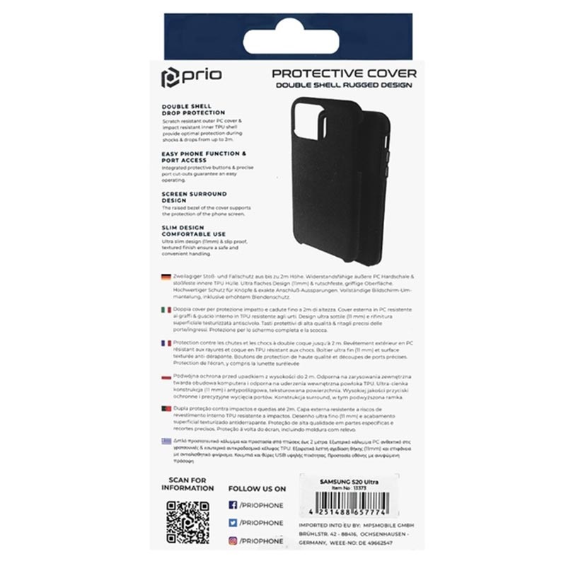 Geef je Samsung Galaxy S20 Ultra een efficiënte en betrouwbare bescherming tegen dagelijkse schade met deze Prio Double Shell serie case. De Prio Double Shell case voor Samsung Galaxy S20 Ultra is gemaakt van geselecteerde materialen: krasvaste pc en slagvaste TPU.