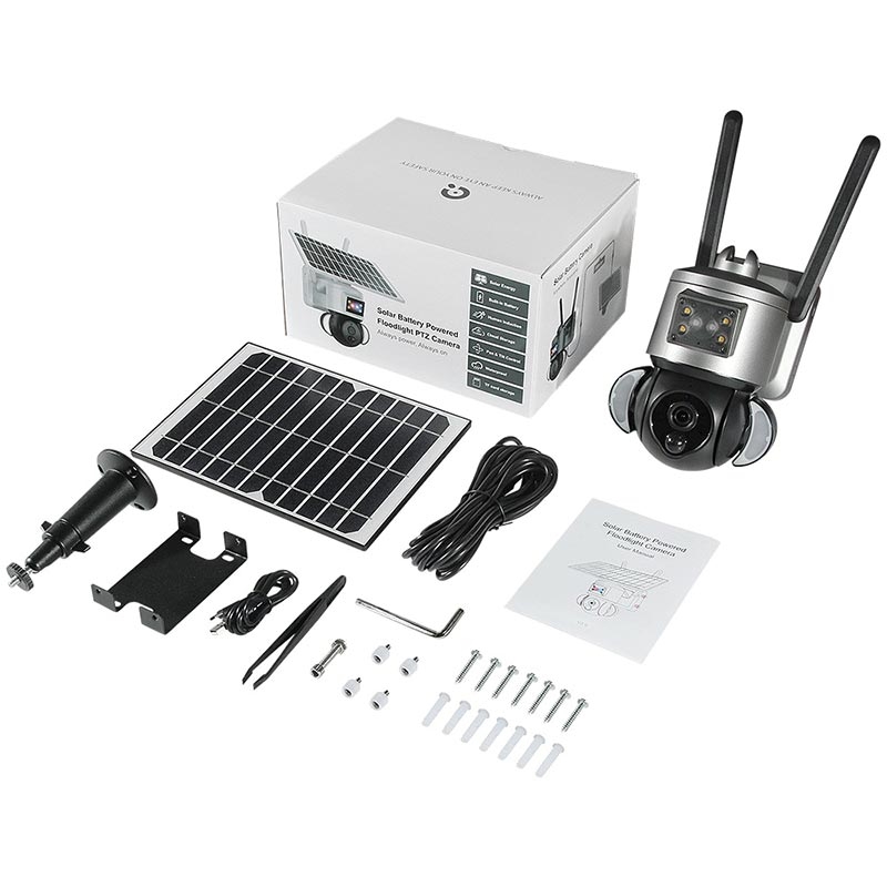 - PTZ-thuiscamera op zonne-energie met alarm en schijnwerper