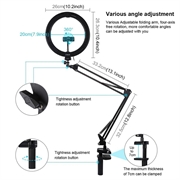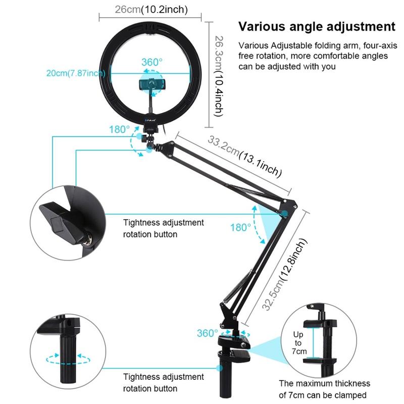 PULUZ 10.2" 26cm Ring Gebogen Licht + Desktop Arm Stand USB 3 Modes Dimbare Dual Kleurtemperatuur LED Vlogging Selfie Fotografie Videolampen met Telefoonklem