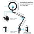 LED ring licht kan worden gemonteerd op de houder en neem het overal, het kan ook worden verwijderd uit de standaard op elk gewenst moment, het statief balhoofd kan 360 graden draaien kan vrij aan te passen aan elke hoek (De houder is niet inbegrepen)