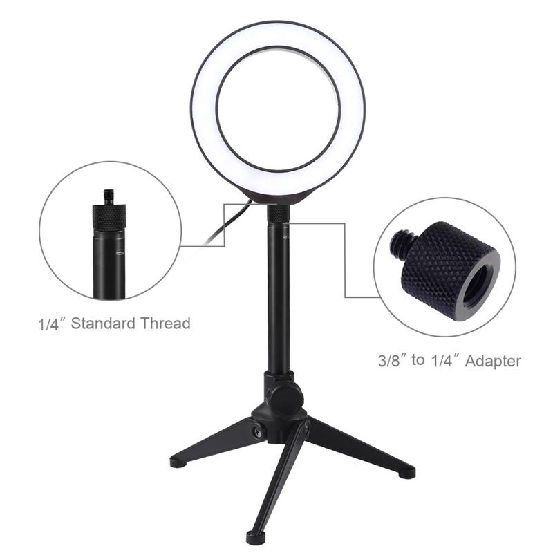 PULUZ 4.7" 12cm Ring Light + Desktop Statief Selfie Stick Mount USB Wit Licht LED Ring Vlogging Fotografie Video Licht Kits