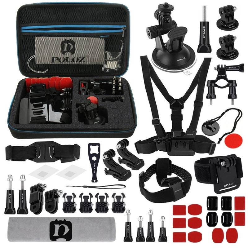 PULUZ PKT10 45-in-1 Accessoireset voor actiecamera's - Grote opbergkoffer, borst- en hoofdbevestigingen, drijvende handgreepset voor GoPro