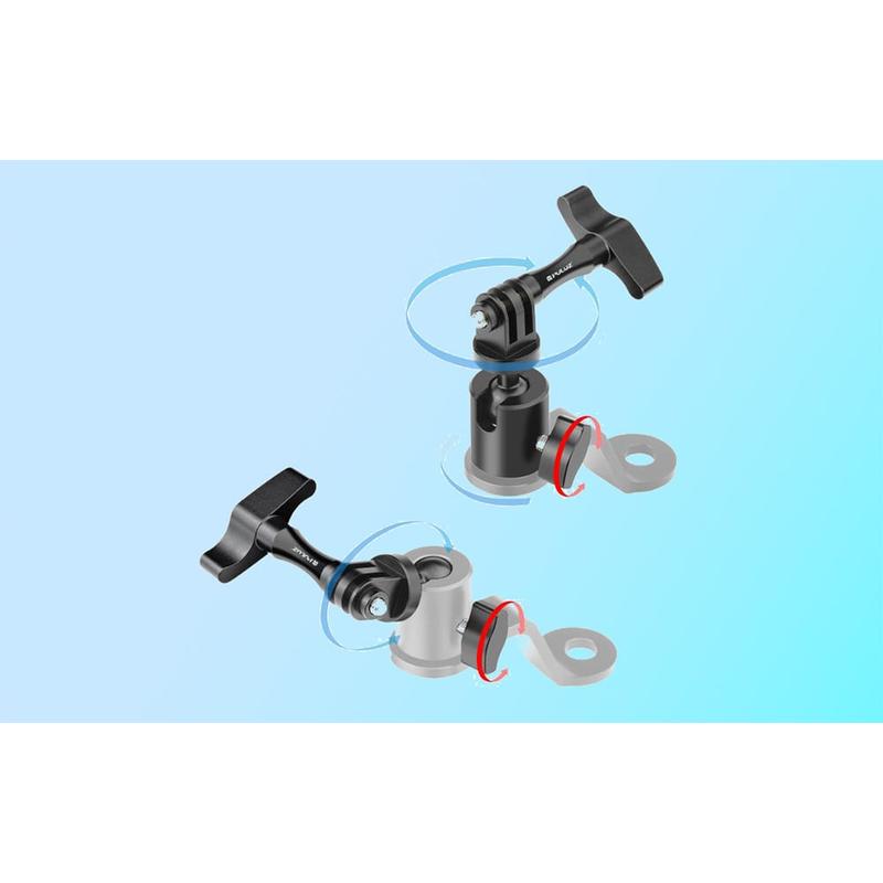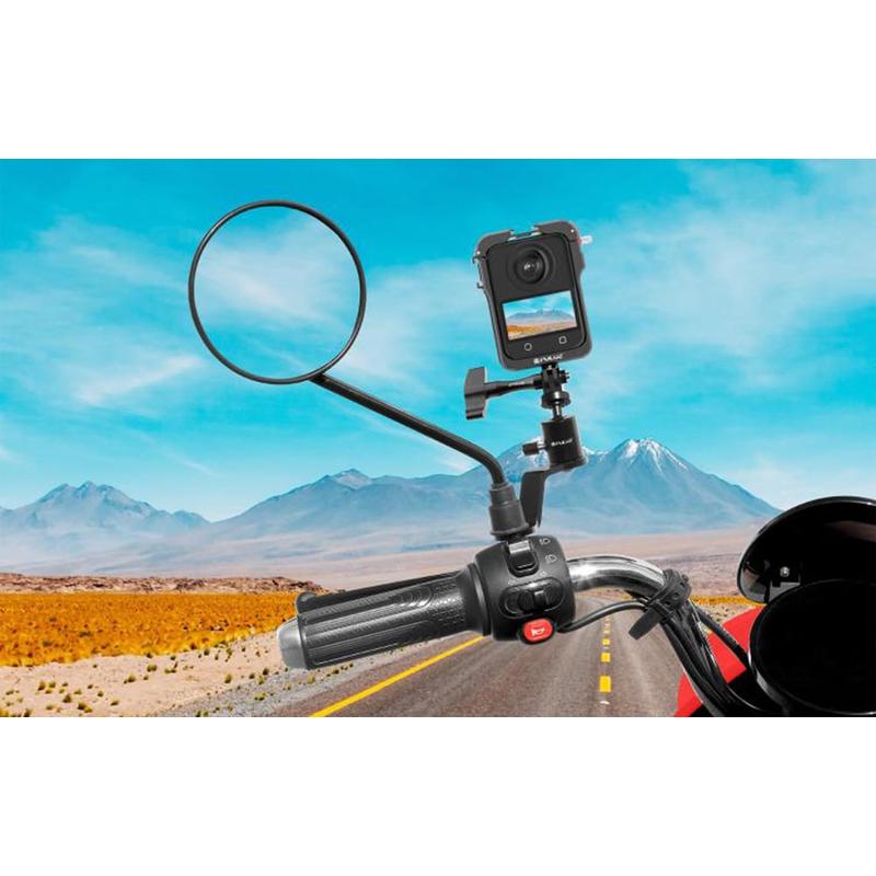 Puluz PU1056B Aluminium motorfiets achteruitkijkspiegel camerabevestiging - 360 graden draaibaar, 1/4" schroefdraad + GoPro-bevestiging, tot 2 kg belasting, geschikt voor 10 mm spiegelbouten