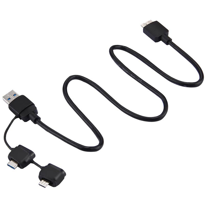 - Kabeltype: microUSB 3.0 naar USB 3.0, microUSB 2.0 en Type-C