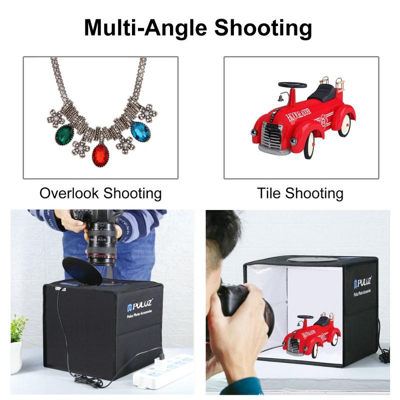 De kleine studio kan snel en gemakkelijk kleine artikelen fotograferen zoals sieraden, accessoires, speelgoed, horloges, gadgets en andere artikelen