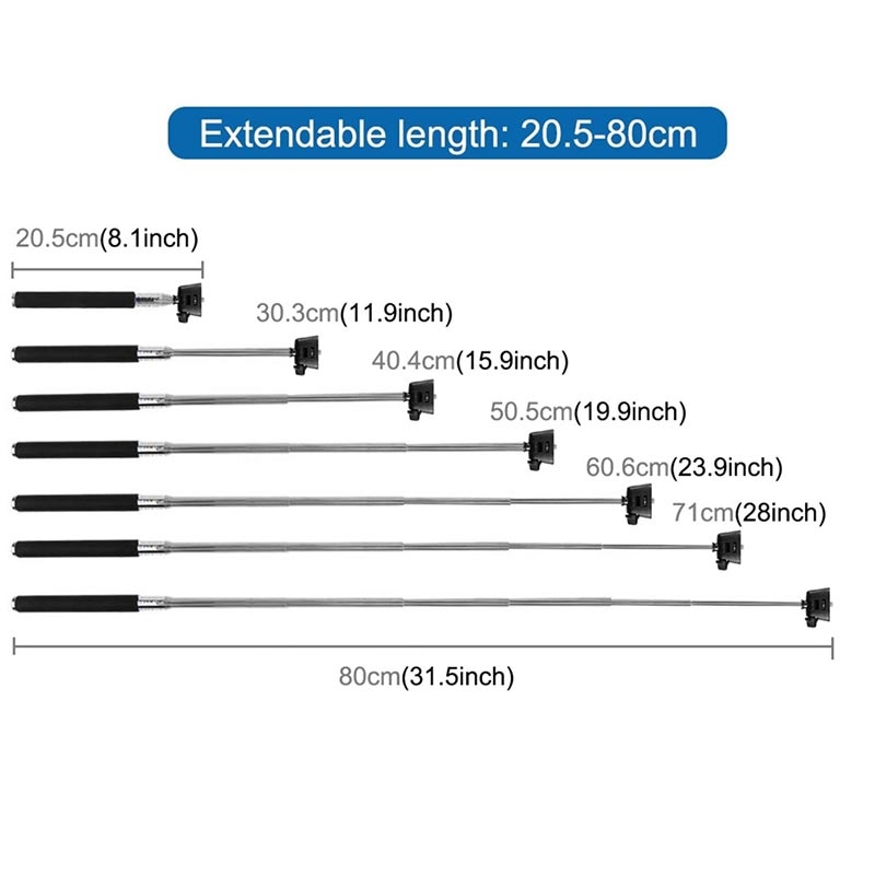 De eerste GoPro stokken uit 2010 waren ongeveer 60 cm lang; moderne met staal versterkte varianten zoals de PU55 zijn langer dan 95 cm en wegen minder dan 0,2 kg. Praktijktests tonen aan dat het uitschuiven van de camera op slechts 30 cm van het lichaam de vastgelegde scène met meer dan 40% kan vergroten, waardoor krappe opnamen voor één persoon worden omgezet in meeslepende reisherinneringen - en dat alles zonder batterijen, apps of extra bevestigingen.