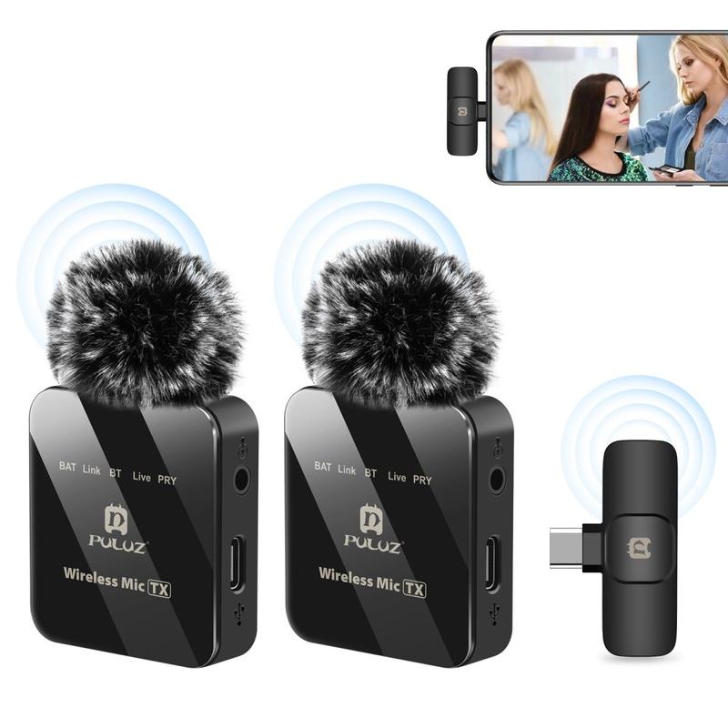Puluz PU648B dubbele draadloze lavaliermicrofoon met Type-C-ontvanger - 2 stuks - zwart
