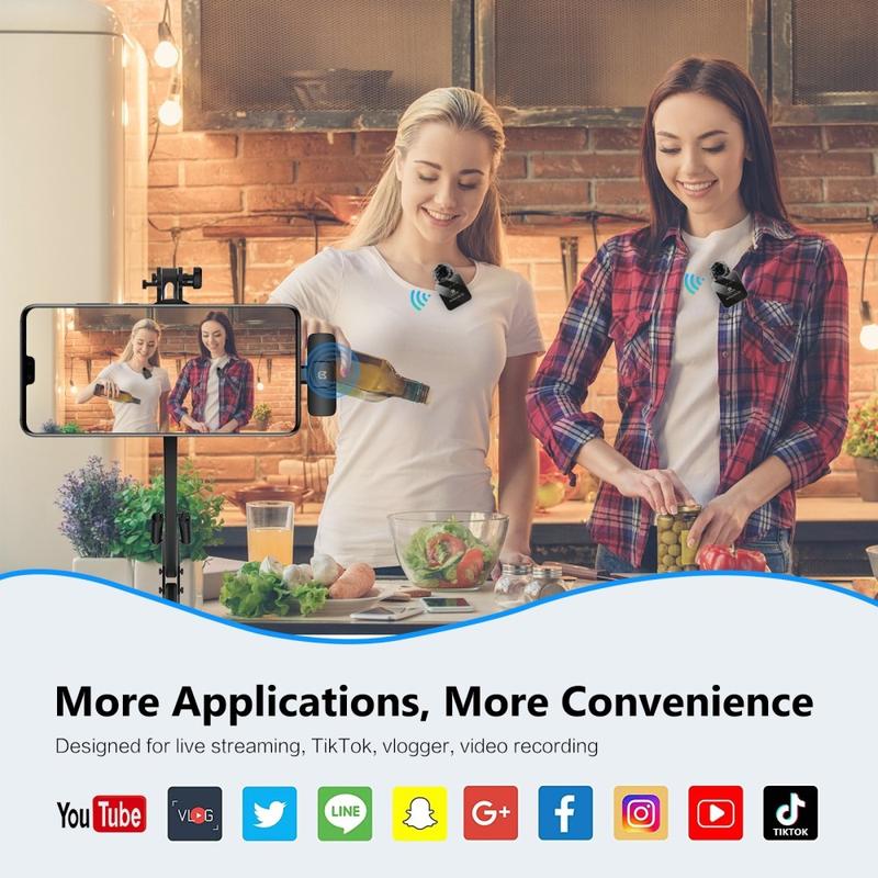 Het ontwerp met twee microfoons maakt dit systeem bijzonder handig wanneer twee sprekers tegelijkertijd moeten worden opgenomen zonder één microfoon te delen. De Type-C-ontvanger ondersteunt handig gebruik met compatibele smartphones en apparaten, terwijl de verbinding met lage latentie helpt om de audio-opname vloeiend en natuurlijk te houden. Ingebouwde functies zoals Bluetooth-compatibele modus, ondersteuning voor slimme demping en nagalmverbetering voegen extra creatieve flexibiliteit toe voor gebruikers die meer willen dan alleen basisstemopname.