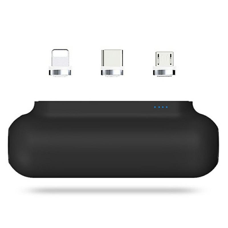 PUP-0373-V2 Mini Power Bank 3200mAh - Draagbare oplader met magnetische Lightning + Micro-USB + USB-C aansluitingen, LED-batterij-indicator