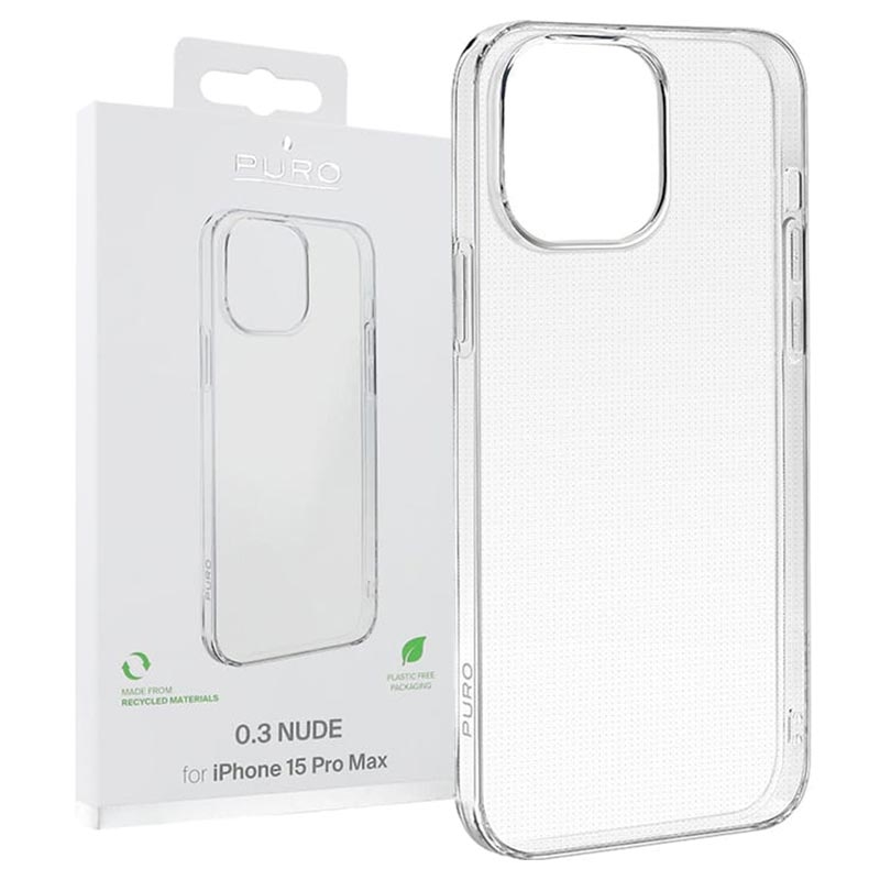 De 0.3 Nude cover van Puro beschermt de delicate afwerking van je iPhone 15 Pro Max.