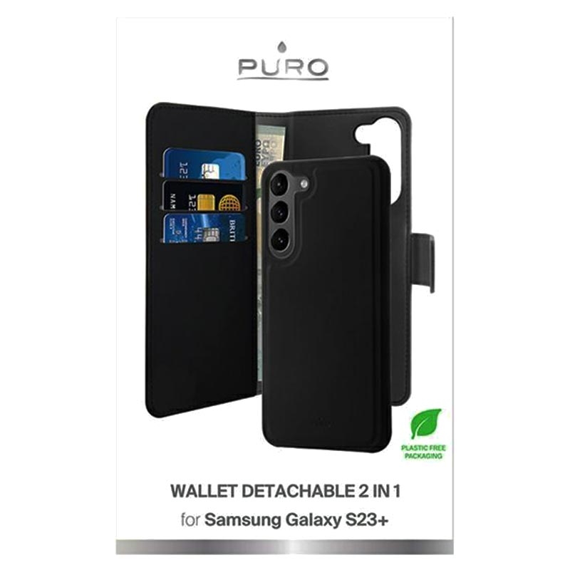 De Puro 2-in-1 portemonnee voor Samsung Galaxy S23+ 5G voldoet binnen enkele seconden aan uw behoeften.