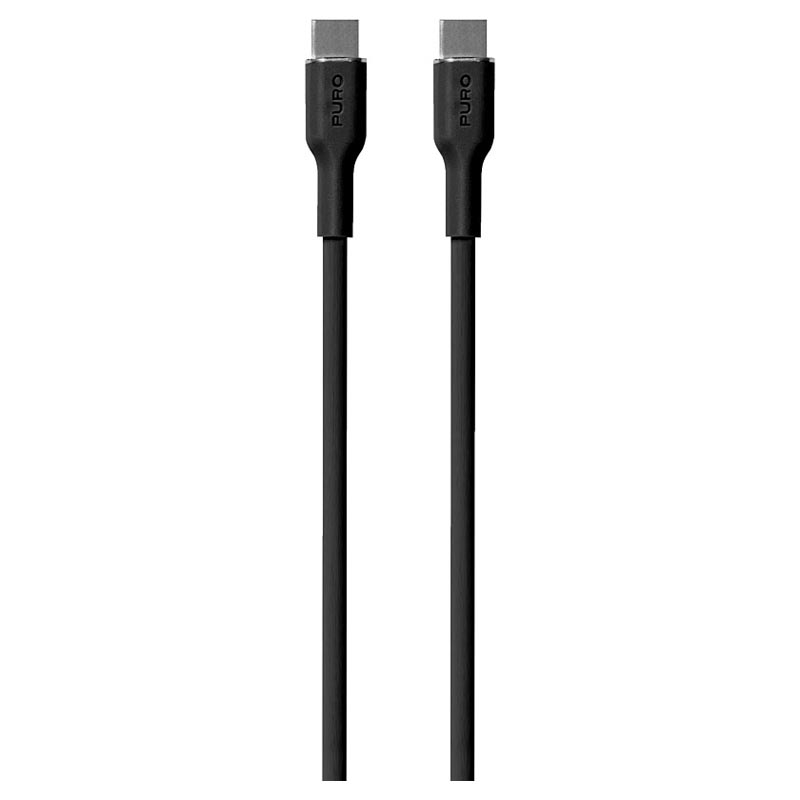 Zachte kabel met twee USB-C connectoren van zacht aanvoelende siliconen in zwarte kleur.