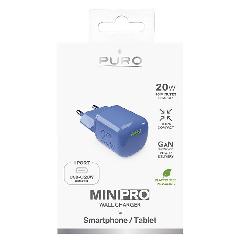 Puro MiniPro GaN USB-C Wandoplader - 20W - Blauw
