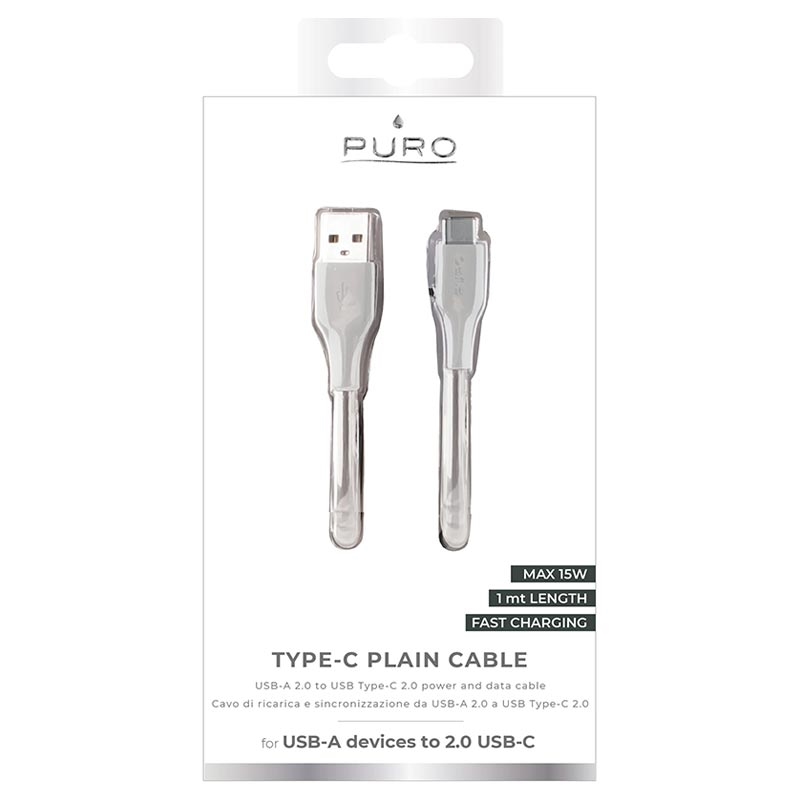 Puro Plain USB-A/USB-C kabel - 1m, 15W - Wit
