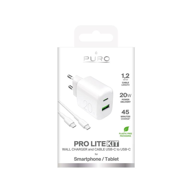 Puro Prolite 20W dual-poorts oplader met USB-C kabel - Veelzijdig opladen voor al je apparaten