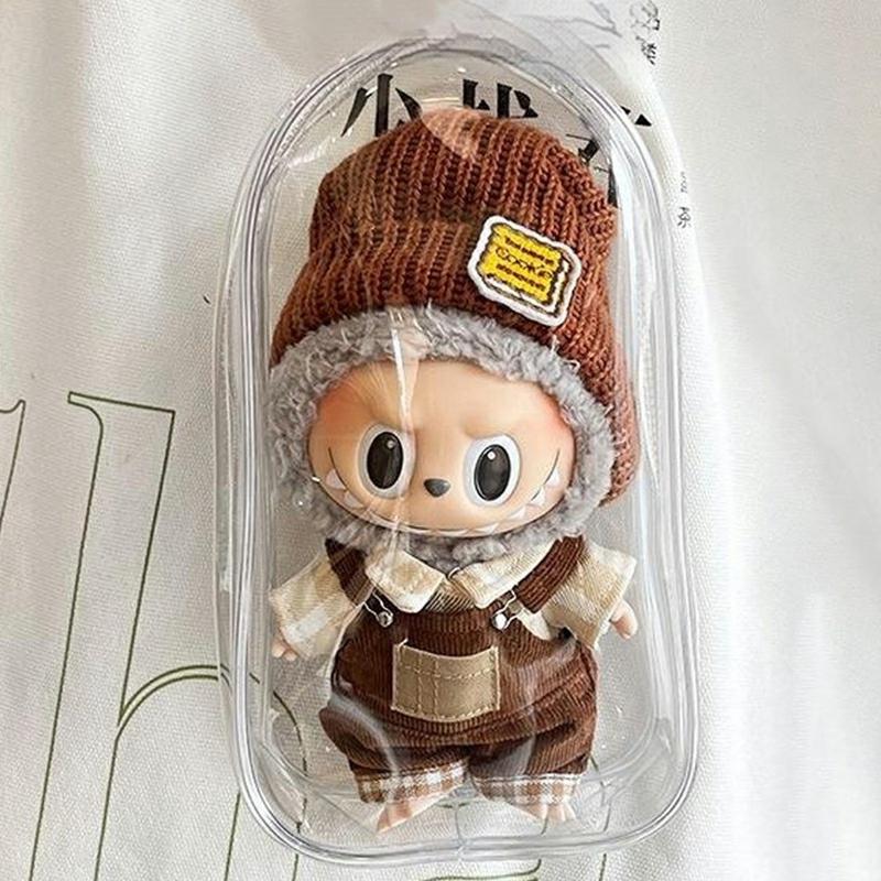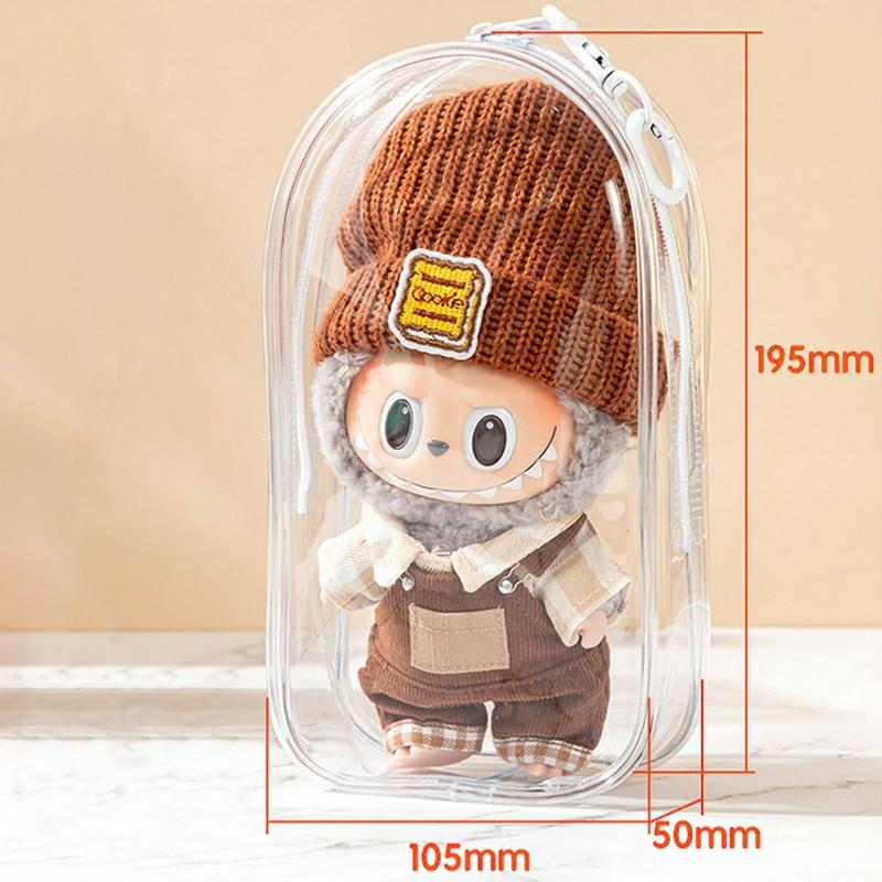Laat je ondeugende Labubu zien terwijl je hem brandschoon houdt. Deze kristalheldere PVC displaytas past over 17cm pluche of vinyl figuren en beschermt ze tegen stof, vuil en krassen zonder ook maar één detail te verbergen. Met de ingebouwde sleutelhangerclip kun je je lievelingsfiguur aan rugzakken, handvatten van wandelwagens of koordjes hangen, zodat je verzameling veilig reist en er overal goed uitziet.