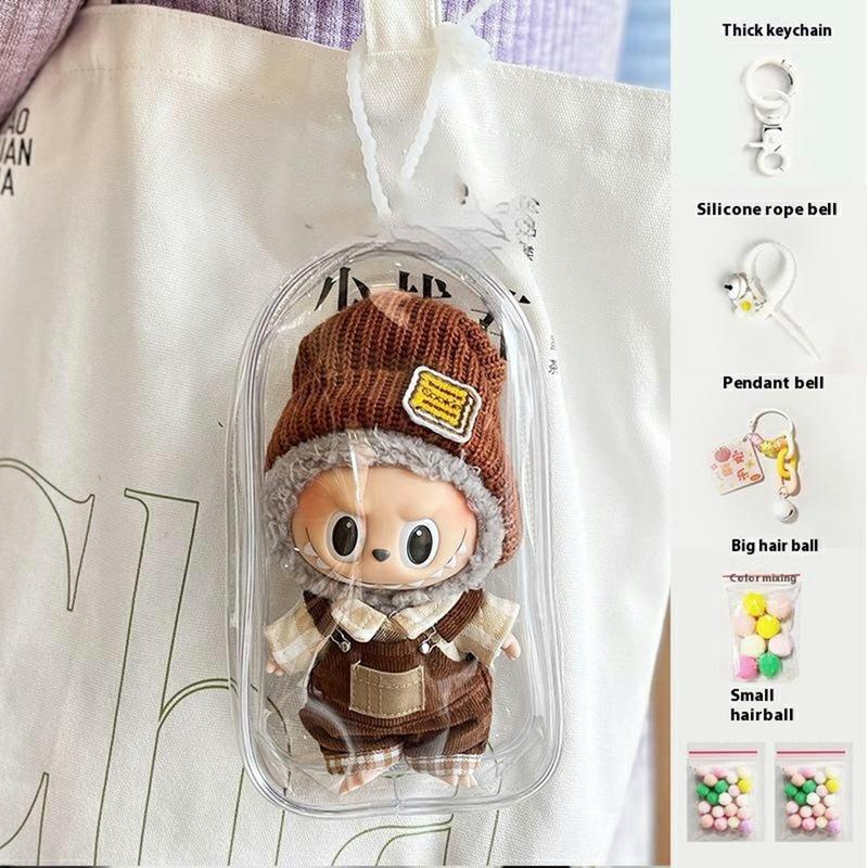 PVC Opbergtas met Sleutelhanger voor 17cm Labubu Pluche & Minifiguren - Stofdichte, Draagbare Opbergtas