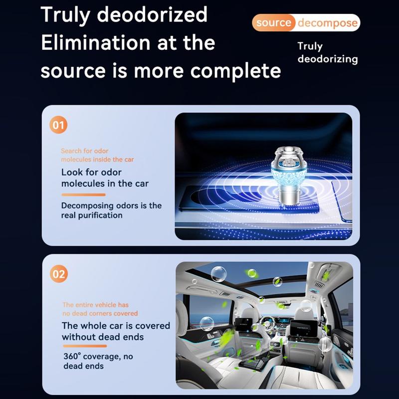 In tegenstelling tot standaard luchtverfrissers voor in de auto die ongewenste geuren alleen maar maskeren, is deze zuiveringsinstallatie ontworpen om geurmoleculen direct aan te pakken. Het zuiveringsbereik van 720° zorgt voor een gelijkmatigere luchtbehandeling in de hele cabine, waardoor de lucht rondom de bestuurder, passagiers, stoelen en voetruimtes wordt verfrist. De combinatie van negatieve ionen met hoge concentratie en een laag ozongehalte zorgt samen voor een aangenamere omgeving in de auto tijdens dagelijkse woon-werkverplaatsingen, lange ritten of in de file.