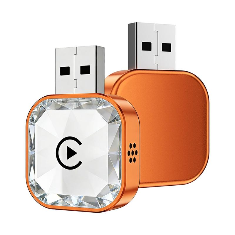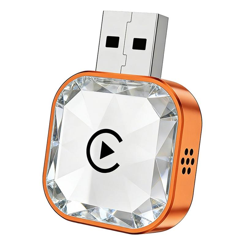 Q1AS Diamond Cut 4-in-1 draadloze Android Auto- en CarPlay-adapter - Zilver / Oranje
