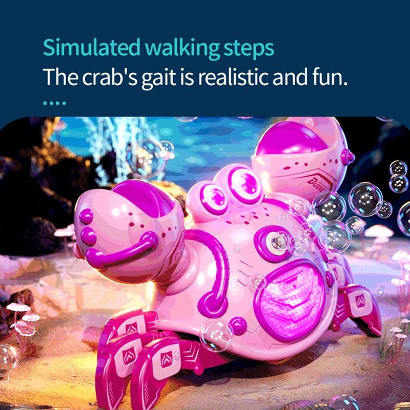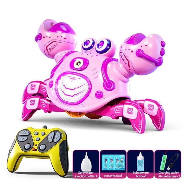 • Q227 Op afstand bestuurbare mecha-krabrobot voor kinderen - 2,4 GHz RC-speelgoed dat bellen blaast en water spuit, met led-verlichting, muziek en 360°-rotatie