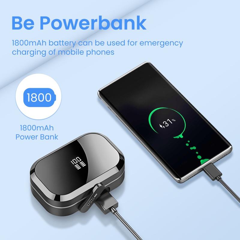 • Q25 draadloze oortjes met oplaadcase met powerbankfunctie - Bluetooth 5.2-oortjes met led-display en 3 geluidsmodi