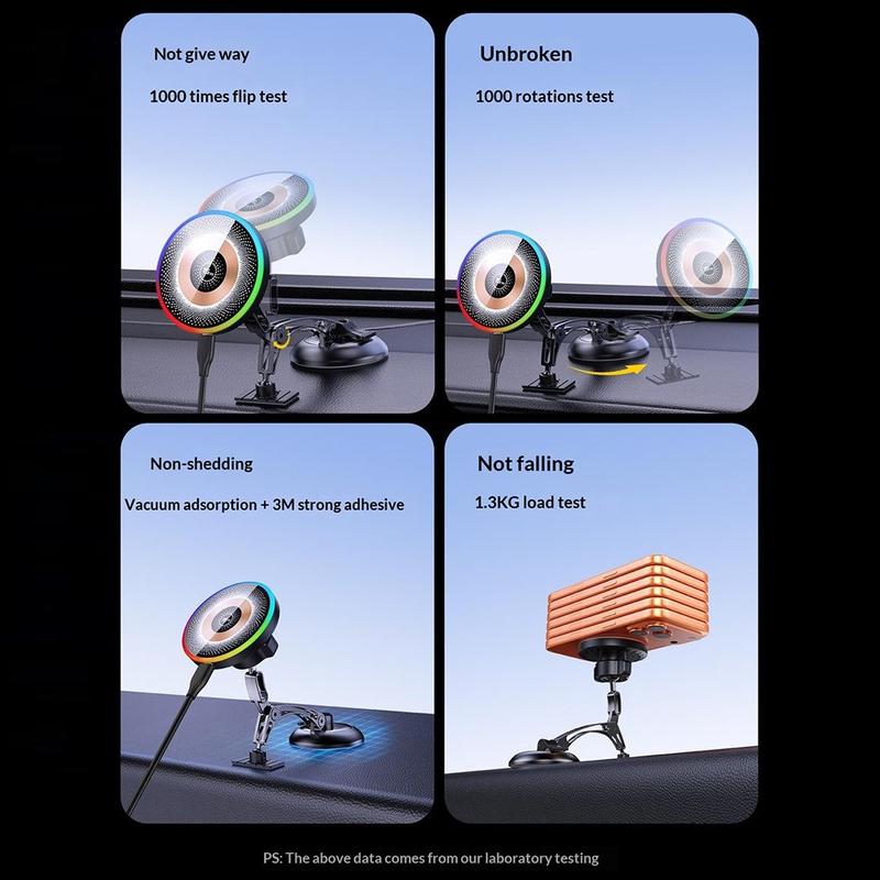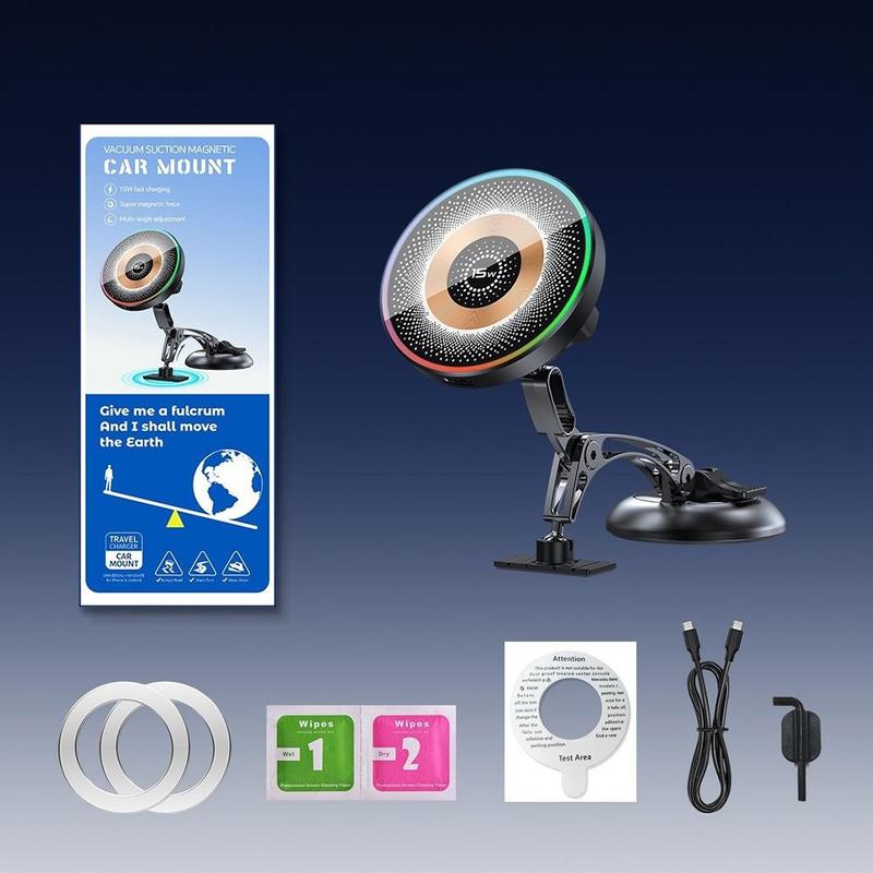 De QH-AKD248 is ontworpen om uw telefoon tijdens het rijden opgeladen, stabiel en goed zichtbaar te houden. Het apparaat combineert een krachtige magnetische houder met 15 W draadloos opladen, zodat u uw telefoon snel kunt bevestigen en tegelijkertijd kunt opladen. De vacuümzuignap is gemaakt voor betrouwbaar gebruik op het dashboard of de voorruit, waardoor u een strakkere en handigere opstelling in de auto krijgt.