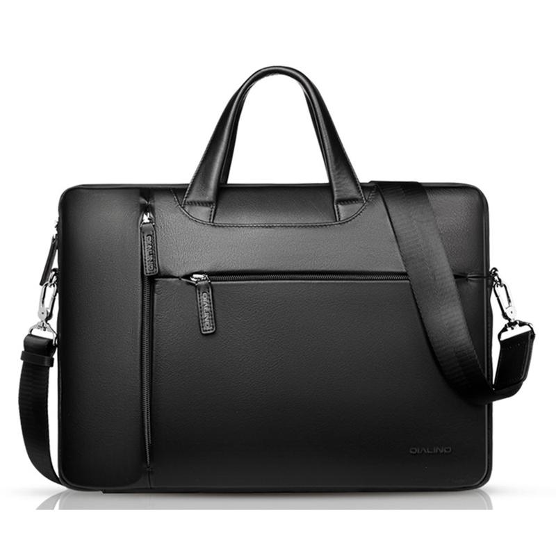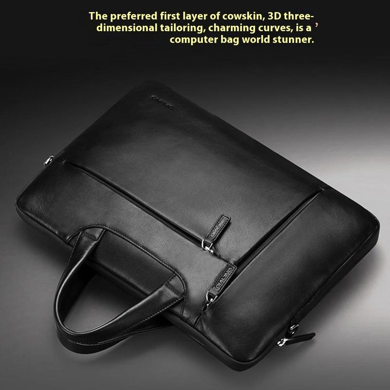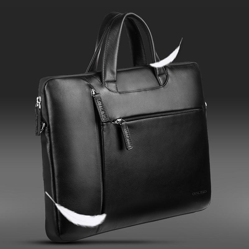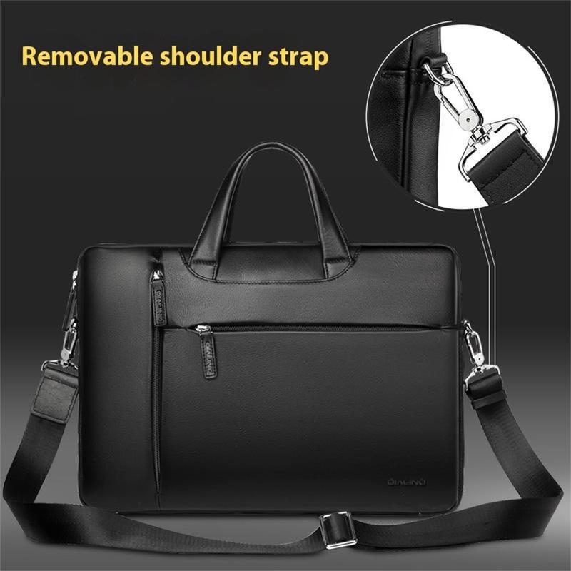 Qialino Echt Leren Laptoptas - Premium Cowhide Draagtas met Afneembare Riem & Multi-Vak bescherming