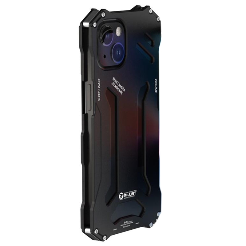 R-JUST Mechanische Armor Metalen Schokbestendige Case voor iPhone 14 Plus Anti-Fall Telefoon Shell Hollow Design Telefoon Protector