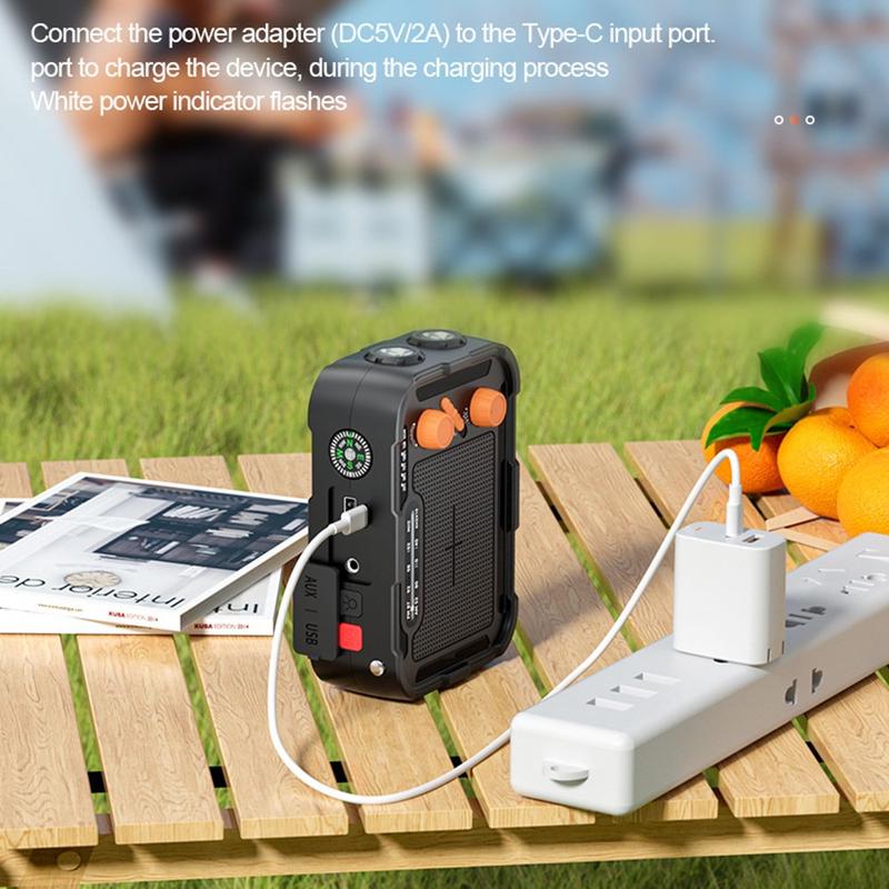 Blijf voorbereid en verbonden waar je ook bent met de R-N31 Outdoor Emergency Power Bank. Dit multifunctionele apparaat combineert een 5000mAh back-up batterij, handzwengel generator en zonne-lader, zodat je essentiële elektronica kunt opladen tijdens outdoor avonturen of onverwachte stroomuitval. Gebouwd om verschillende omgevingen te weerstaan, bevat de R-N31 een ingebouwde radio voor up-to-date nieuws, weeralarmen en entertainment onderweg.