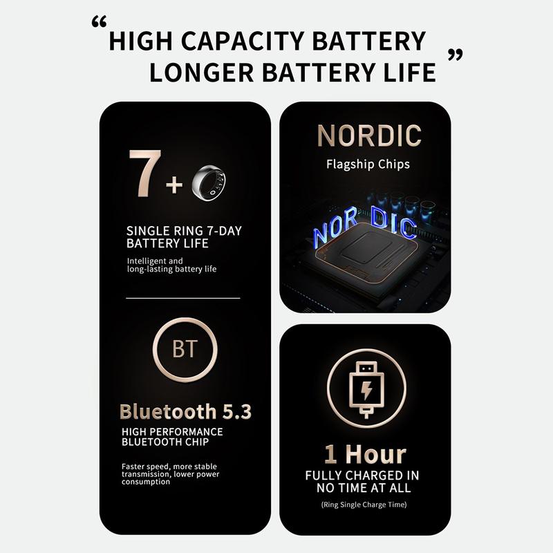 De R09M Smart Ring voor gezondheidsmonitoring is een geavanceerde wearable die is ontworpen voor uitgebreide gezondheidsmonitoring. Met een IP68 waterdichtheid is hij bestand tegen stof en onderdompeling in water, waardoor hij geschikt is voor dagelijks gebruik, workouts en buitenactiviteiten.