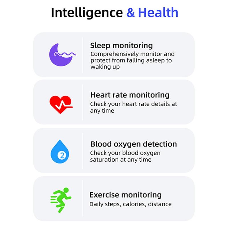- Uitgebreide gezondheidstracking via de Smart Health app - Houdt hartslag, bloedzuurstof, slaapkwaliteit en activiteitsniveaus bij.
