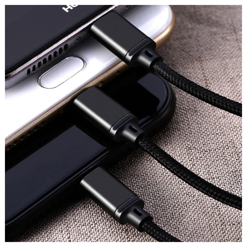 Wil je ook niet verschillende kabels meenemen als je reist! Dan is dit accessoire de perfecte oplossing. Neem deze 3-in-1 USB-kabel van Remax Gition en laad je apparaten op, of het nu een Lightning-, Type-C- of microUSB-poort heeft. De kabel is gevlochten, slijtvast en duurzaam.