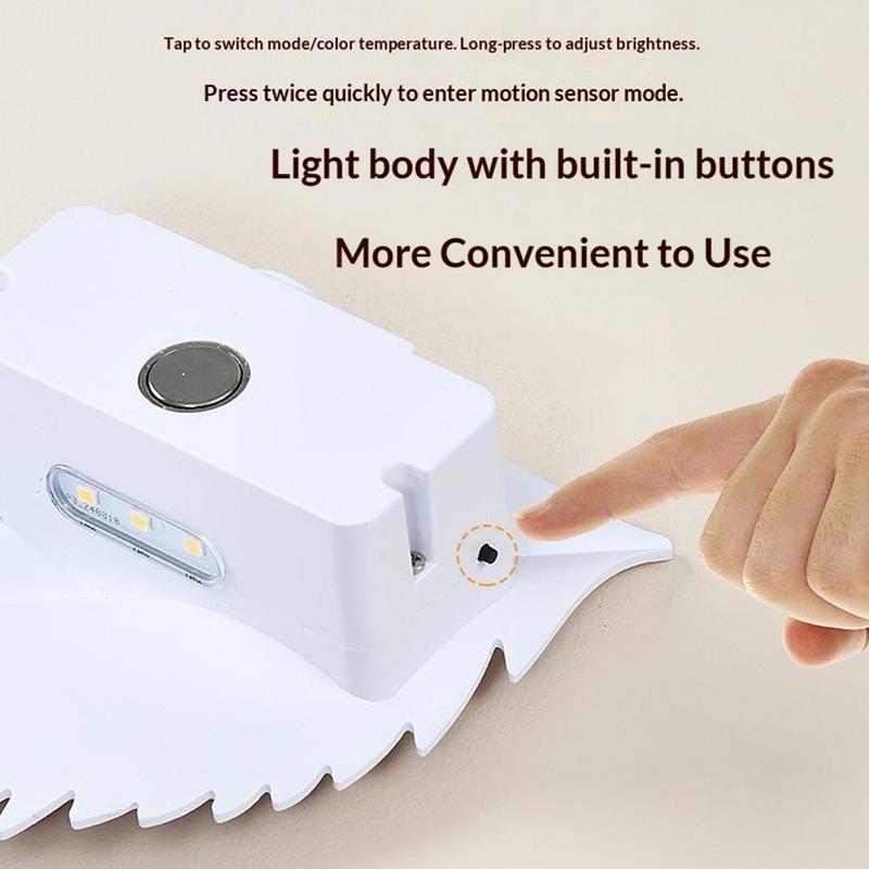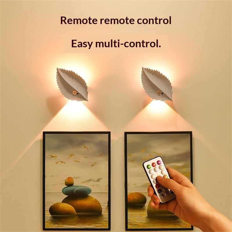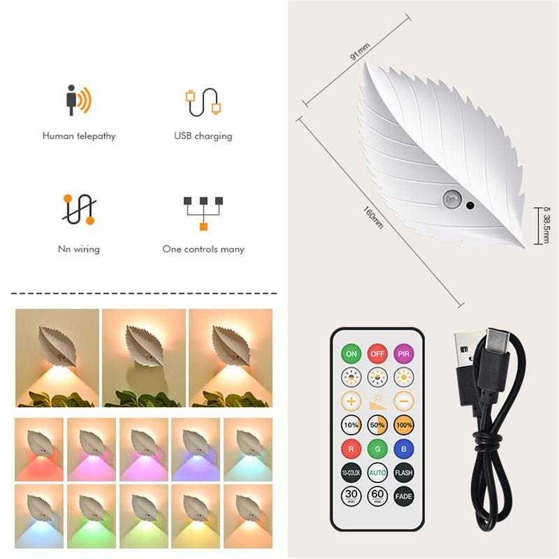 RGBW oplaadbaar bladnachtlampje met bewegingssensor en afstandsbediening - magnetische wandlamp, traploos dimbaar, 10 kleuren, 2000 mAh, USB-C