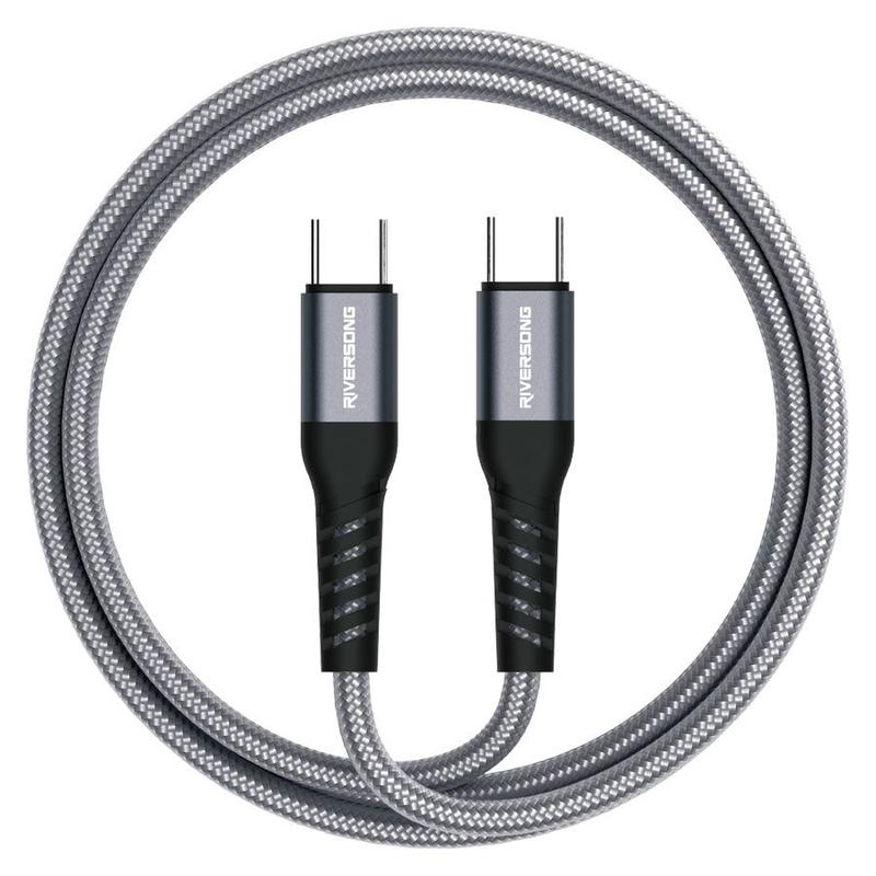 Upgrade je oplaadervaring met de Riversong Hercules 06 - 100W USB-C naar USB-C PD Nylon Gevlochten Kabel van 1m en geniet van efficiënte, betrouwbare stroomvoorziening voor al je USB-C apparaten.