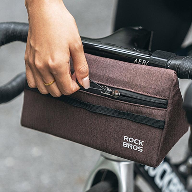 • ROCKBROS 1.3L Driehoek Fiets Voorbalk Tas Polyester Opbergzakje voor Fiets - Legergroen